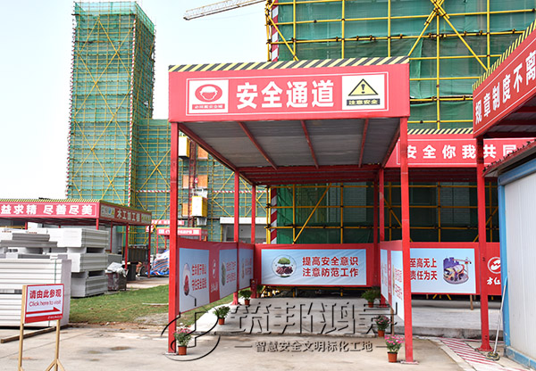 安全通道,施工現(xiàn)場實行人車分流,主要人員出入通道搭設了專用安全通道,安全通道兩側設置宣傳欄,提升施工作業(yè)人員的質量意識、安全意識。